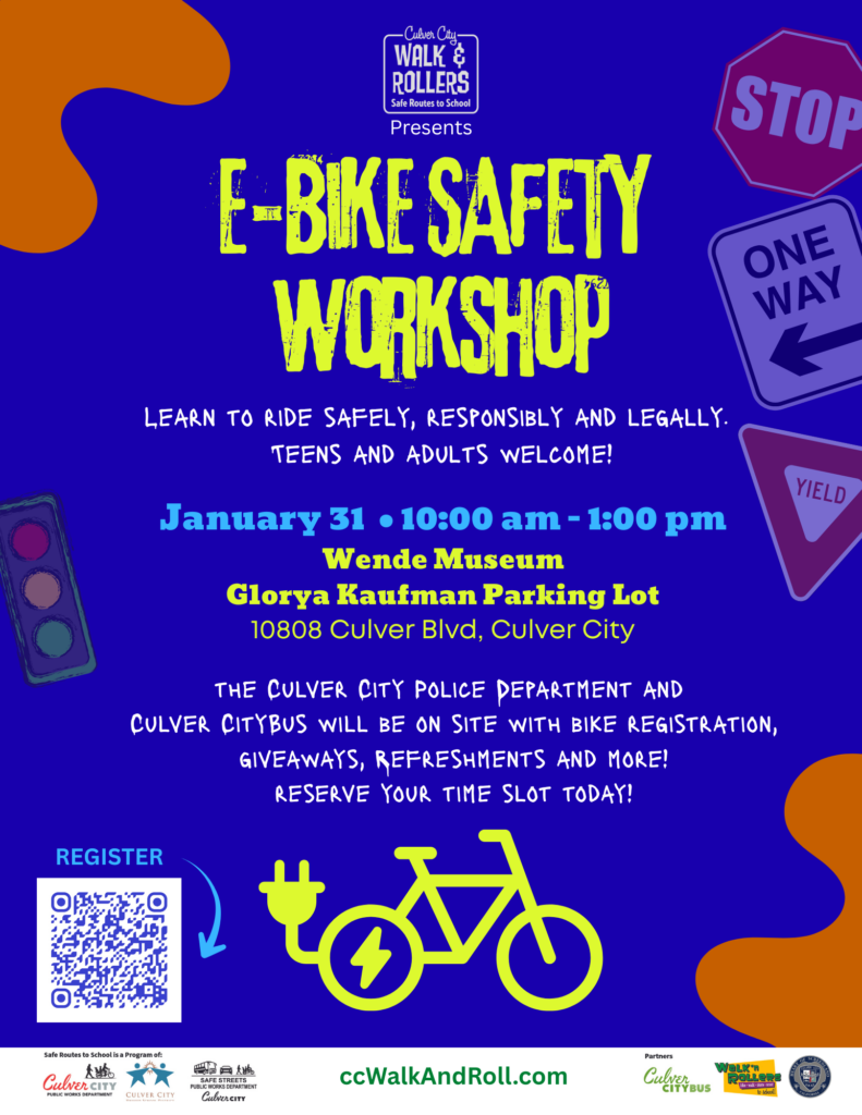 Culver City Police Department will be on hand to register bikes in the Project 529 Theft Prevention System and Culver CityBus will be on site to answer questions regarding transit and e-bikes